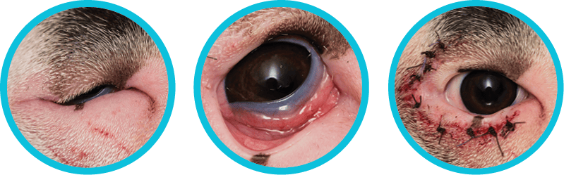 The standard post-operative medical therapy involves the pet wearing an Elizabethan collar to avoid their rubbing the sutures. We also prescribe an ophthalmic antibiotic or lubricant ointment and an oral non-steroidal, anti-inflammatory medication (NSAID) for pain.